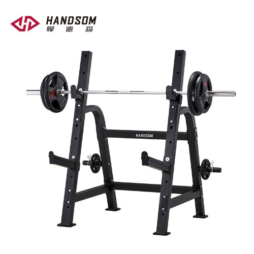 4个支撑杆,8个高度档位调节,插销结构设计方便快速调节。后置杠铃片放置杆,整体钢管采用50*70大管为框架。可以练习自由深蹲,配合小飞鸟凳可进行卧推训练。